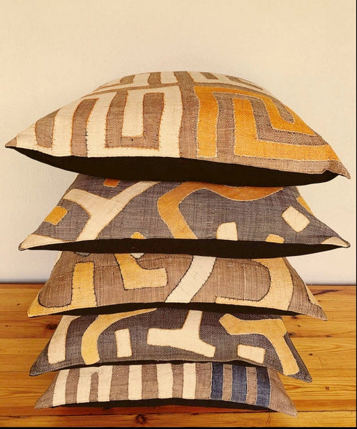 View full detailsThe Kuba pillow is made from traditional woven long strips of hand loomed Kuba cloth that is woven from raffia. Colors are produced with indigo, na...