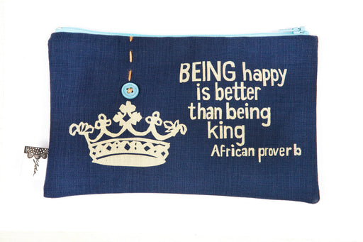 "Being happy is better than being king." This beautiful handcrafted flat pouch showcases a traditional African Proverb. Screen printed and fully l...