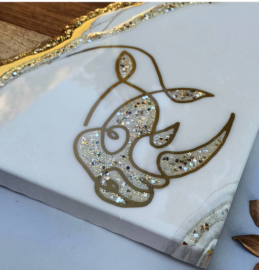 This exquisite Kiaat wood Rhino serving board is accessorized with a calfskin leather strap and is made by hand by Ruby in Pretoria, South Africa. ...