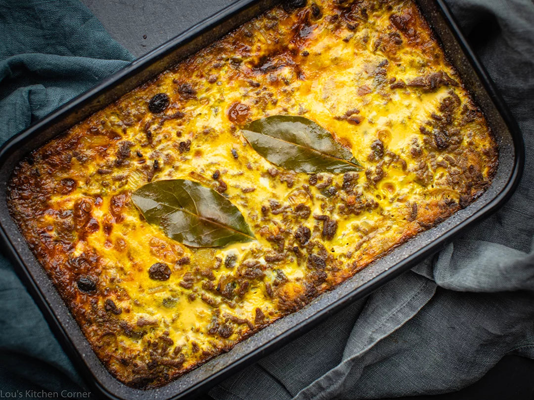 Indulge in the rich flavors of traditional South African bobotie, a comforting dish that’s a delightful fusion of sweet and savory. Imagine a spiced ground meat base, often made with beef or lamb, enriched with aromatic curry spices, dried fruits, and a hint of lemon, all baked to perfection with a creamy egg topping that sets into a golden crust. Each bite offers a burst of textures and tastes, making it a beloved staple in South African cuisine. Served with yellow rice and sambal, bobotie is not just a meal; it’s a celebration of heritage and warmth that will transport your taste buds to the vibrant heart of South Africa.