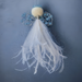 The cute Marinda Baba has the same colors as her bigger sisters – clear and light blue beads. She has a white feather dress, felt head and a simple knit wing and halo, and measure approx 4" tall. Marinda’s name suits her well, meaning ‘of the sea’.