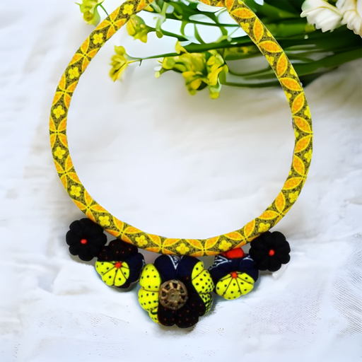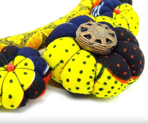 View full detailsThis African Moon necklace is made from genuine South African shweshwe fabric and raw silk. The necklace is easily fastened by means of a textil...