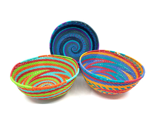 View full detailsThese brilliantly colorful traditional Zulu scooby wire bowls are handcrafted by HIV patients in Kwa-Zulu Natal. Made with recycled scooby wire....
