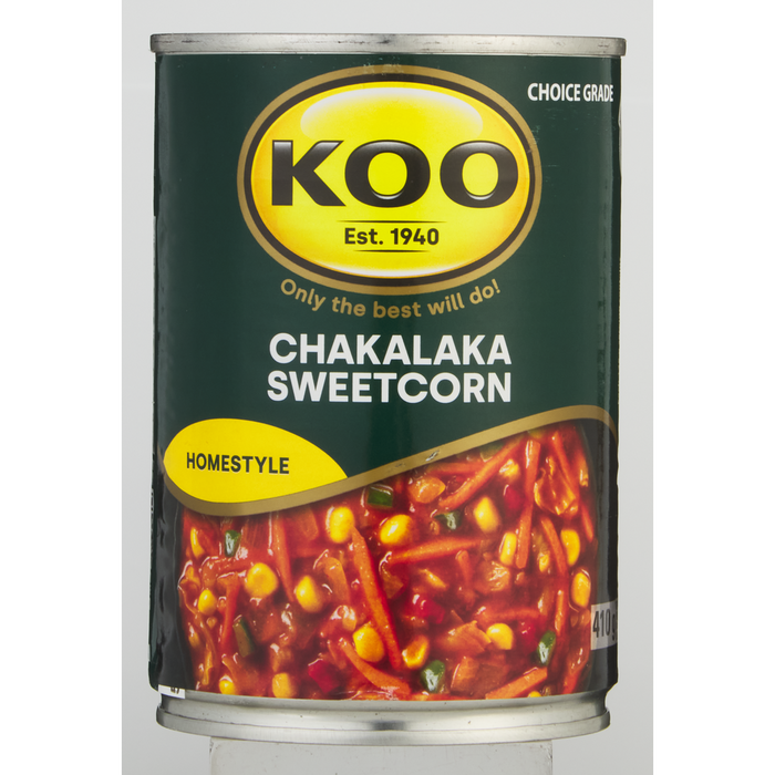 KOO Chakalaka with Sweetcorn is a spicy mix of cabbage, whole kernel corn, carrots, onions, green peppers and red peppers. Its delicious with pap and wors, and is perfect for a braai. Serve as a salad to accompany any meal or for a snack on the go, just enjoy on bread.